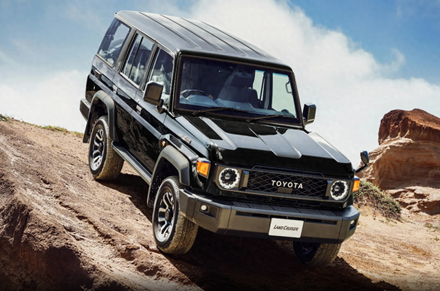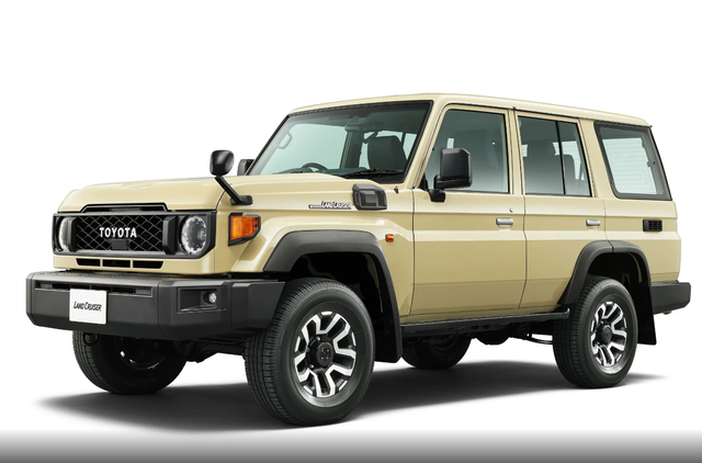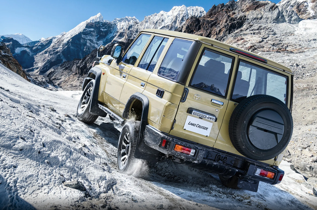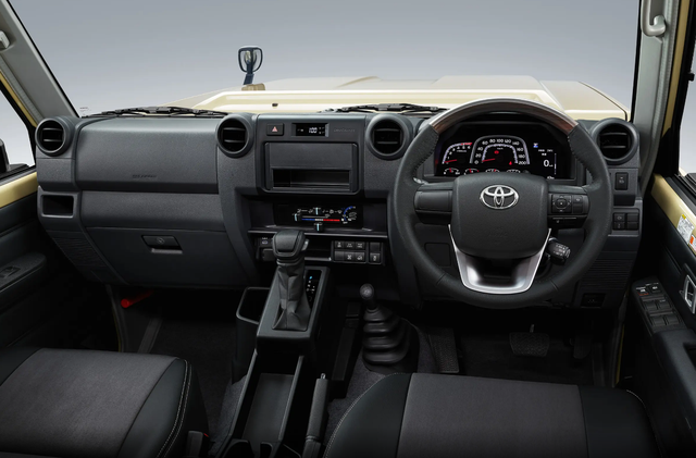 新车在外观方面,延续了丰田LC78经典的设计风格,还是相当复古的,中网由黑色菱形格栅组成,中网的TOYOTA字母LOGO也是较为醒目,大灯组采用圆形设计,远近光均采用卤素光源数魅优配,翼子板两侧还提供转向小黄灯,机器盖两侧的后视镜也是较为少见,整体设计,还行比较复古的。