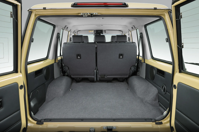 丰田LC78整车采用方盒子造型,侧踏板采用固定式,后视镜采用黑色塑料材质,轮毂采用双拼色,车尾还提供后挂式备胎,尾门采用对开式,还是较为少见的,后备箱的空间也是比较大,有着不错的深度,后备箱垫采用植绒材质。