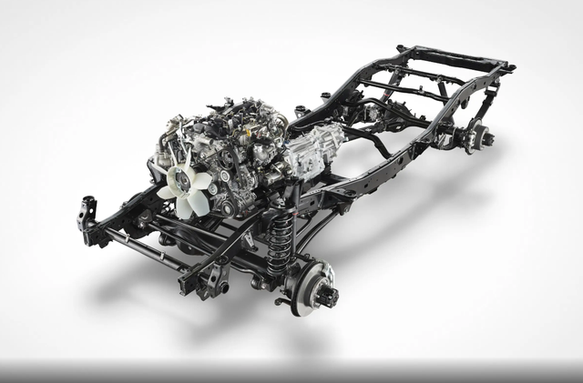 动力部分,新款车型将搭载2.8T柴油发动机,传动系统为6速手自一体变速箱,四驱系统采用分时四驱,提供两驱,高速四驱,低速四驱,前桥和后桥均提供差速锁,前后悬挂均采用整体桥式
